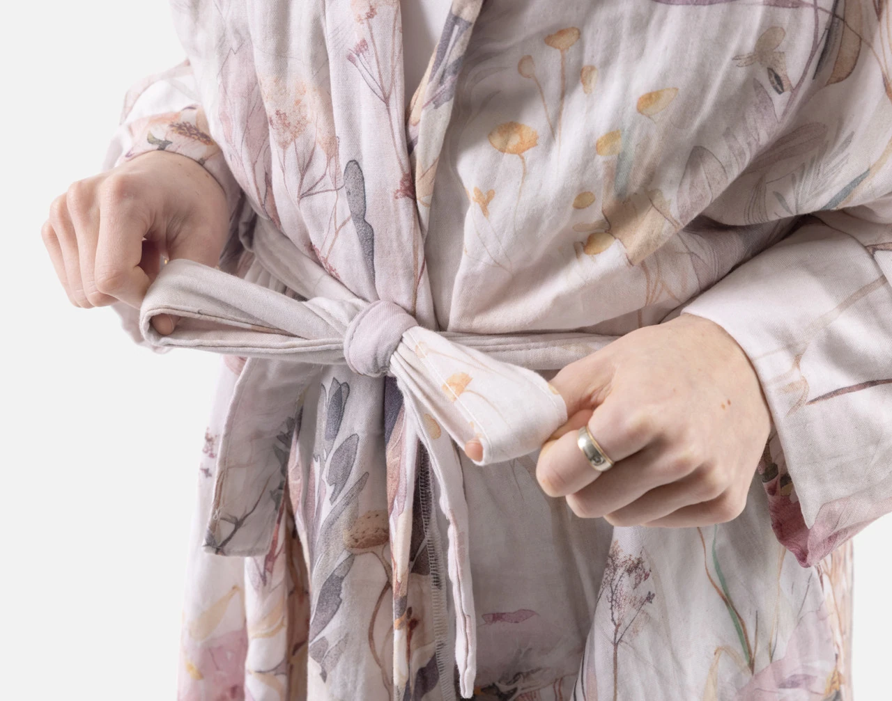 Lounge in lightweight luxury with our Bamboo Cotton Gauze Bathrobe in Peach Blossom. Made from a bamboo cotton blend gauze fabric, this robe features an airy and breathable drape that feels wonderfully soft over your skin. Complete with a matching belt to hold it securely closed, and with an iconic oversized floral design across its surface, this timeless accessory is an absolute dream for at-home comfort all spring and summer long.