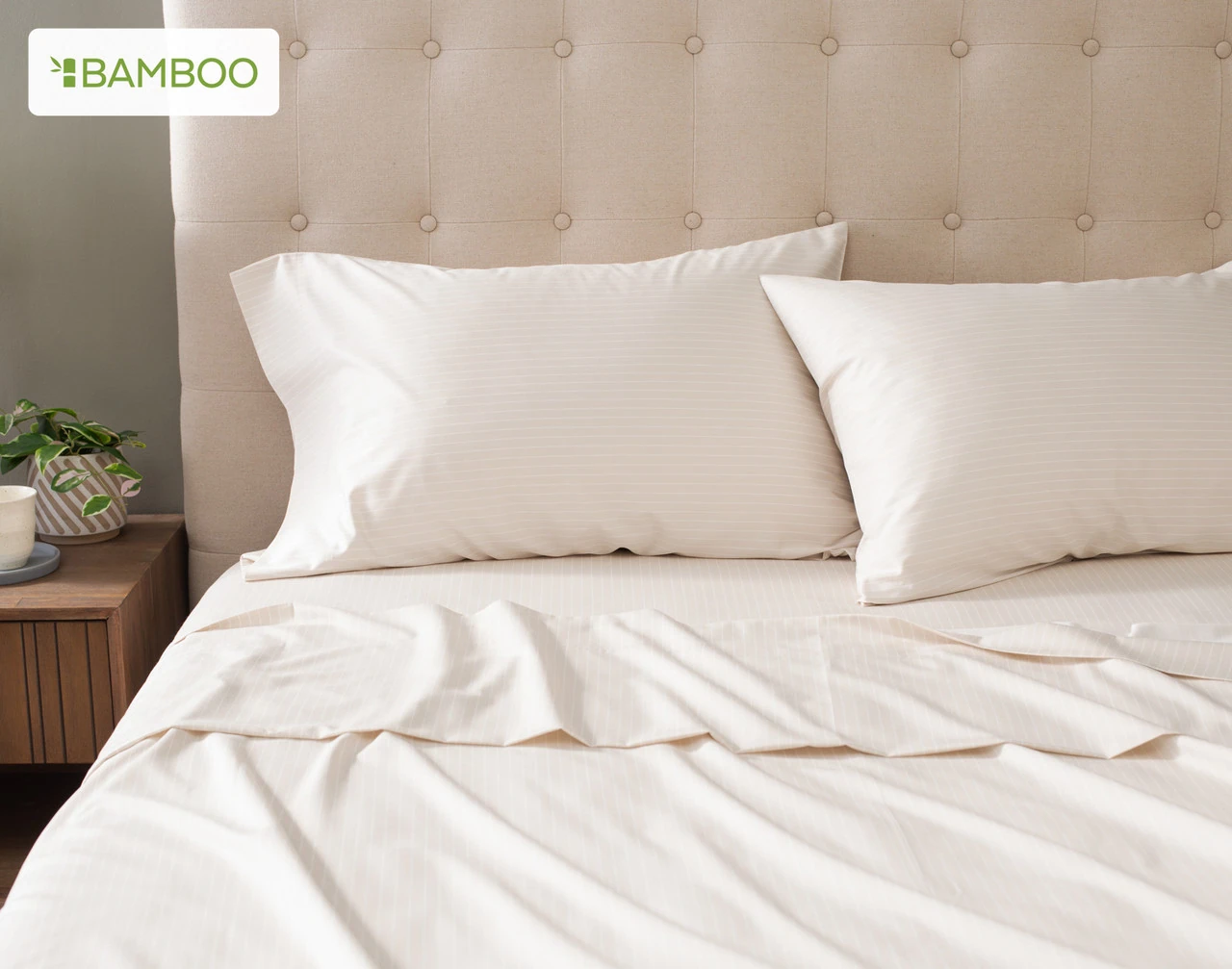 Experience fresher, more comfortable rest with our super soft and breathable Bamboo Cotton Pillowcases in Sandy Stripe. Naturally airy and moisture-wicking, our bamboo cotton fabric brings dryer sleep, letting those with sensitive skin and allergies rest easy! Blended with classic cotton for strength and durability, our bamboo cotton sheets get softer with every wash, making for long-lasting, great-feeling sheets. What’s more, the fabric we use comes from Moso Bamboo, a sustainable, fast-growing resource that requires less water and produces more oxygen than most crops, offering healthier sheets for you and the planet.
