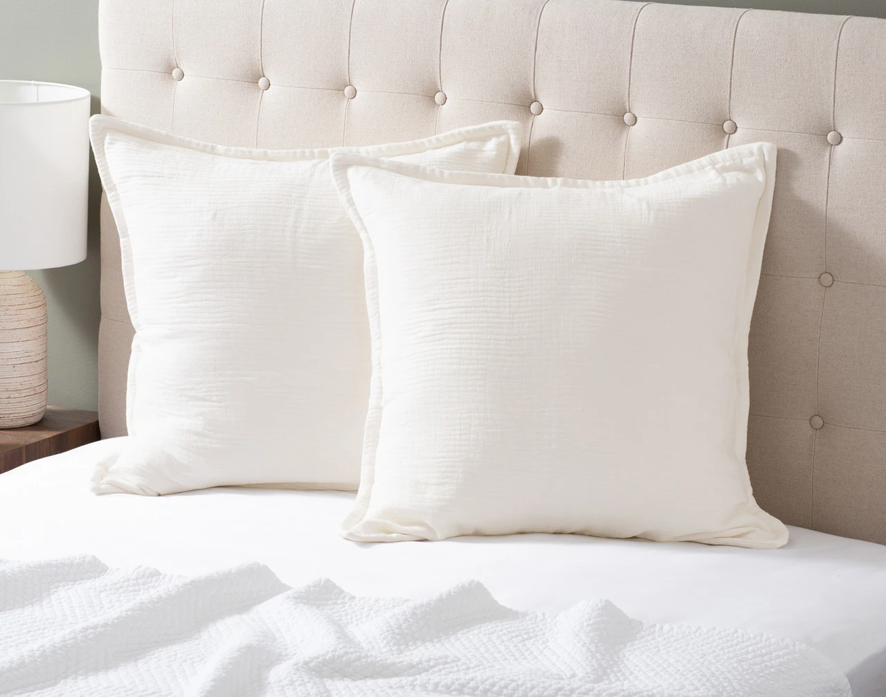 Add a cozy touch of softness to your décor with our Bamboo Gauze Euro Sham in White. Crafted with an extra breathable bamboo cotton surface, our euro sham adds comfort in an easy-to-style white colour. Complete with a hidden zipper enclosure and elegant self-flange, our Bamboo Gauze Euro Shams are sized for a snug fit over your insert cushions.
