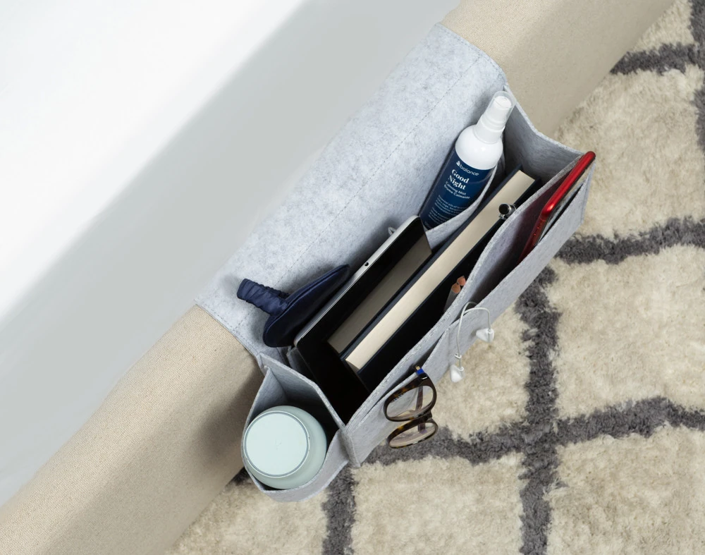 - Includes felt basket, duvet bag, bedside pocket, and elastic bundlers