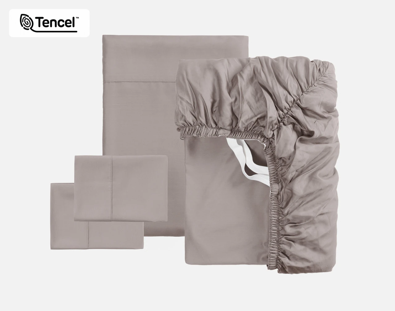 Beyond soft, our BeechBliss TENCEL™ Modal Sheet Set in Beachcomber, a sandy grey, features a luxuriously smooth touch that pampers your skin. Made from responsibly grown and harvested natural wood materials including beech wood, TENCEL™ Modal fabric is refreshingly lightweight and comfortable. Add to that effective moisture control for a fresher, dryer rest, and you have all the ingredients for a perfect night’s sleep — for anyone, in any weather!