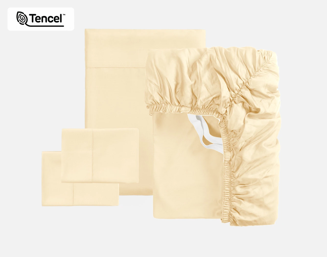 Beyond soft, our BeechBliss TENCEL™ Modal Sheet Set in Cornsilk features a luxuriously smooth touch that pampers your skin. Made from responsibly grown and harvested natural wood materials including beech wood, TENCEL™ Modal fabric is refreshingly lightweight and comfortable. Add to that effective moisture control for fresher, dryer rest, and you have all the ingredients for a perfect night’s sleep — for anyone, in any weather!