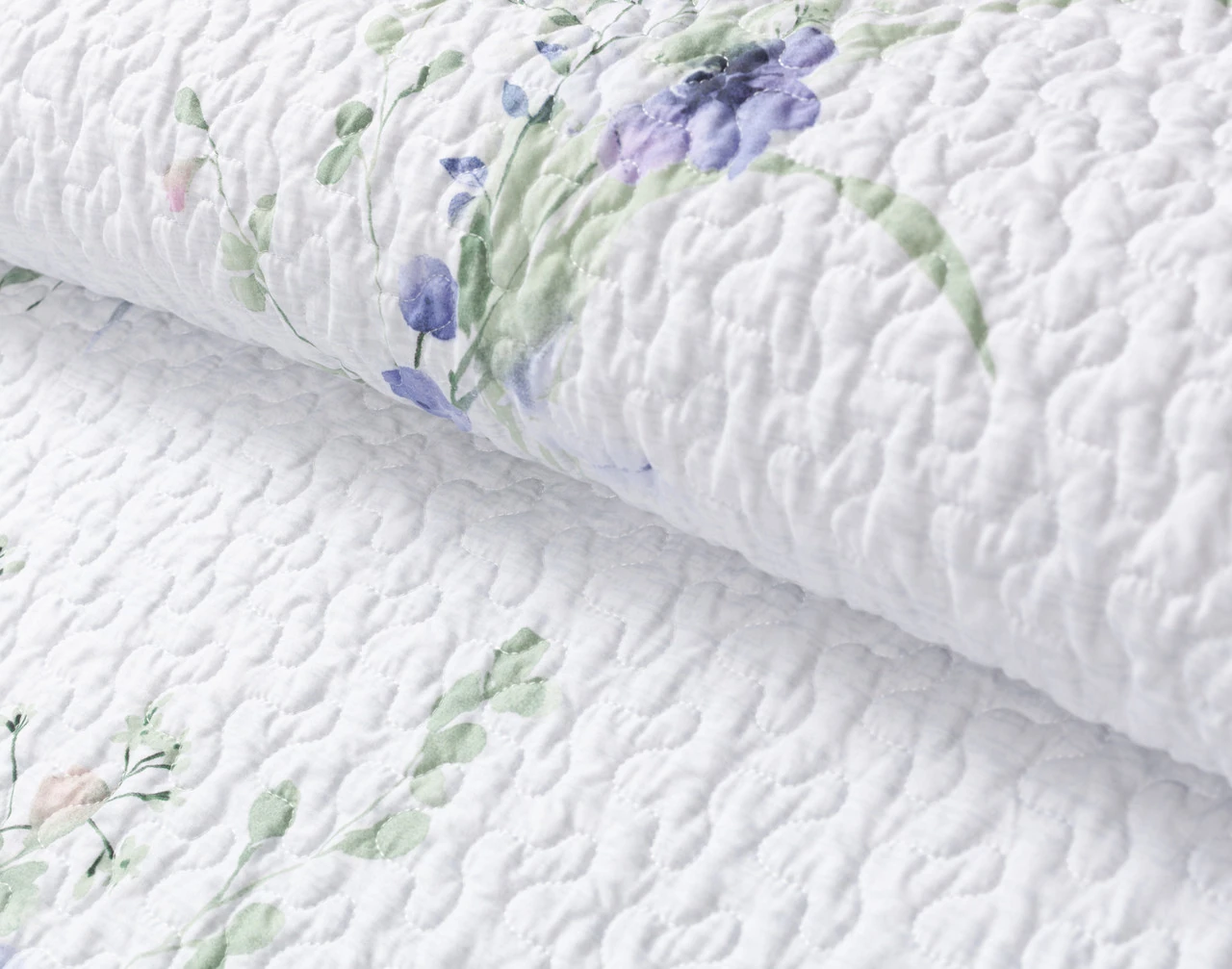 Bloom into your dreams with comfort and ease under our Evelyn Coverlet Set! This timeless design features watery blue florals sprouting over a pleasing bright white surface, and reverses to a coordinating solid cloud grey backing. Perfect as an extra layer or blanket on its own in warm weather, this cozy coverlet is a cozy addition to any room, and comes with coordinating pillow sham(s) for an all-in-one complete look.