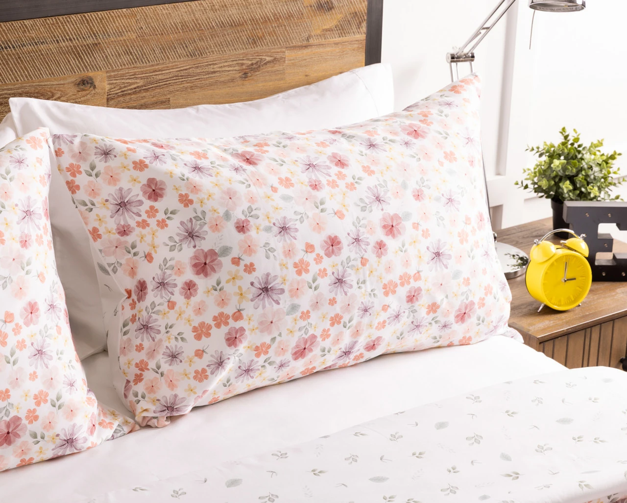 Make bedtime floral and fun with our Poppy Bamboo Cotton Comforter Set. This cozy comforter set features a kid-friendly design of wildflowers in reds, oranges, pinks, purples, and yellows on a white background, and flips over to a coordinating scattered green leaf design with a white backing. Made with an wonderfully soft bamboo cotton blend surface, this comforter is also filled with eco-friendly recycled polyester fibers, providing a lightweight feel that's great for both winter and summer sleeps. Complete with matching pillow sham(s) for a full and complete look and feel, this comforter set will make nighttime feel as fun and delightful as playtime.