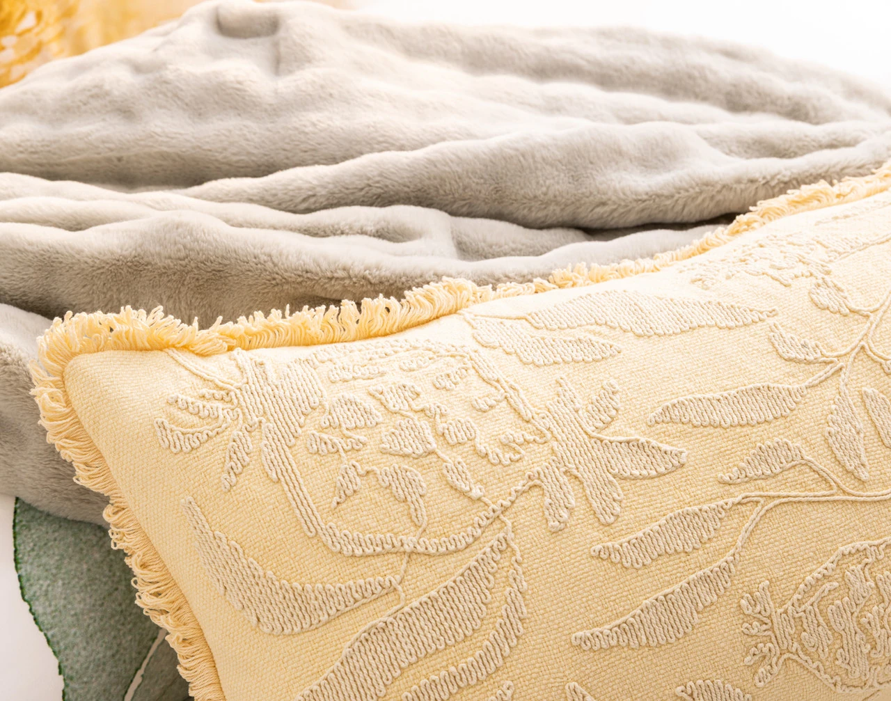 - Embroidered floral design in warm yellow