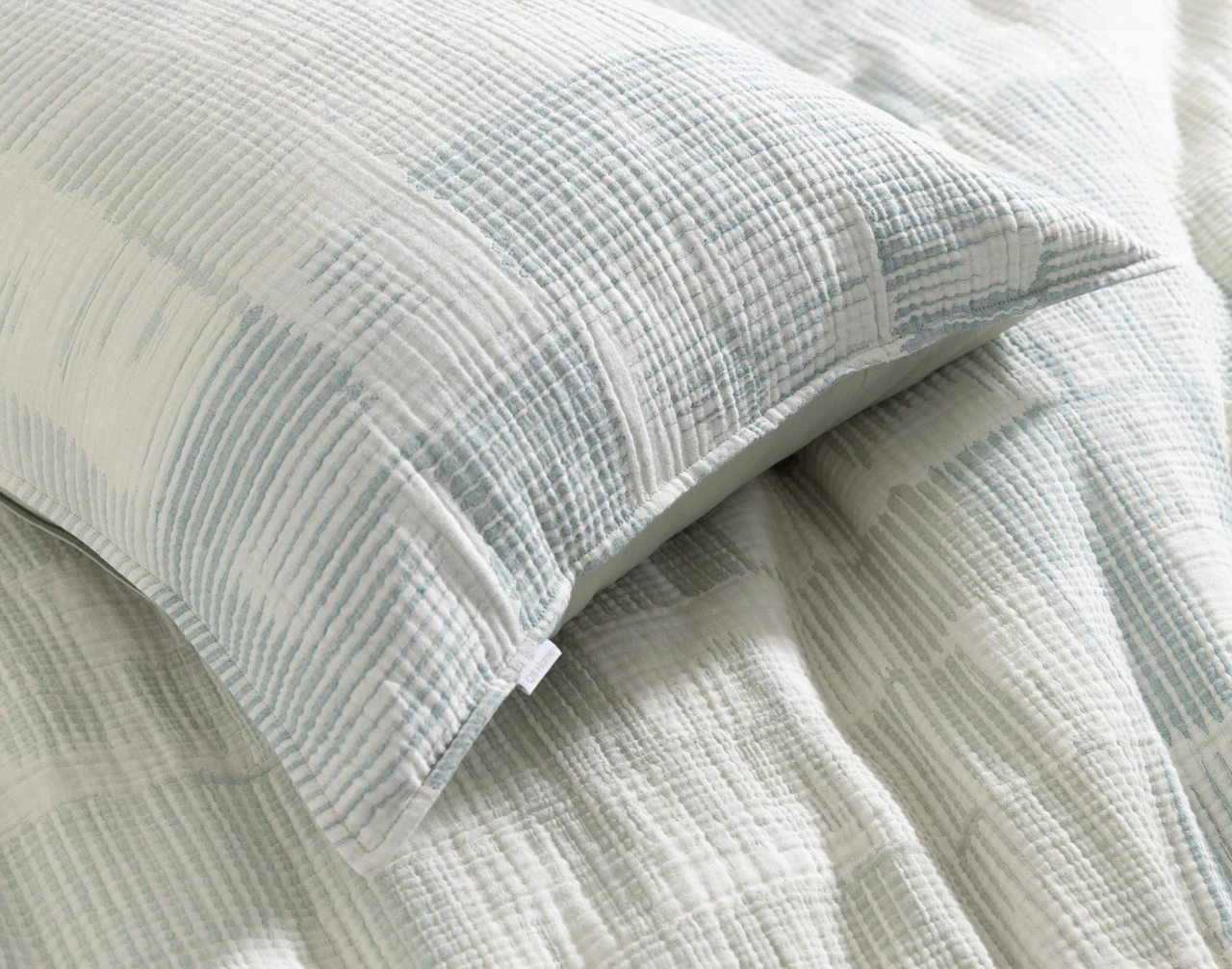 Craft a cozy sanctuary with our Palette Pillow Sham. This woven design features a tactile cotton jacquard surface with a distressed checkerboard pattern, styled after the painted patterns that are created by the artist’s palette knife. Backed with a pre-washed cotton percale backing in a solid off-white tone, this delightful pillow sham will give any bed a comfortable feel and an elevated aesthetic.