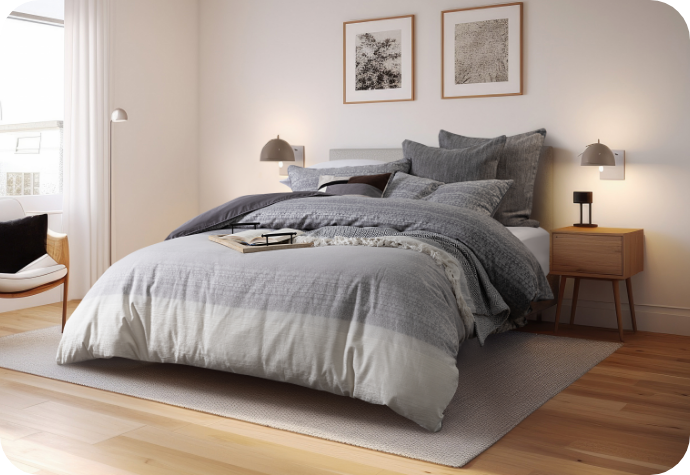 Taking care of your bedding is key to maintaining a calming, comfortable space. There’s nothing better than slipping into a perfectly-made bed with crisp, clean sheets. That’s why we recommend making your bed daily and washing your linens regularly to keep your sleep space fresh and hygienic—so you can enjoy the restful sleep your mind deserves.