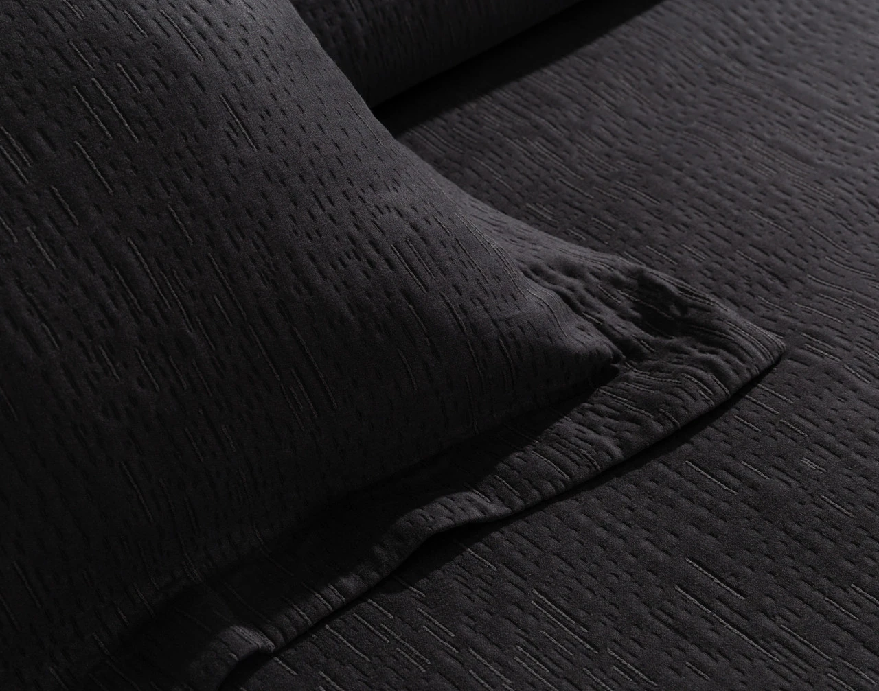 Add a touch of elegance with our Raven Square Cushion Cover. A rich, solid black design, Raven is crafted from a super soft TENCEL™ cotton blend matelassé jacquard fabric. On the coordinating side, our square cushion cover features a TENCEL™ cotton sateen surface for a luxuriously comfortable finish. Effortlessly chic, style our square cushion cover by itself or pair it with the rest of our Raven collection.