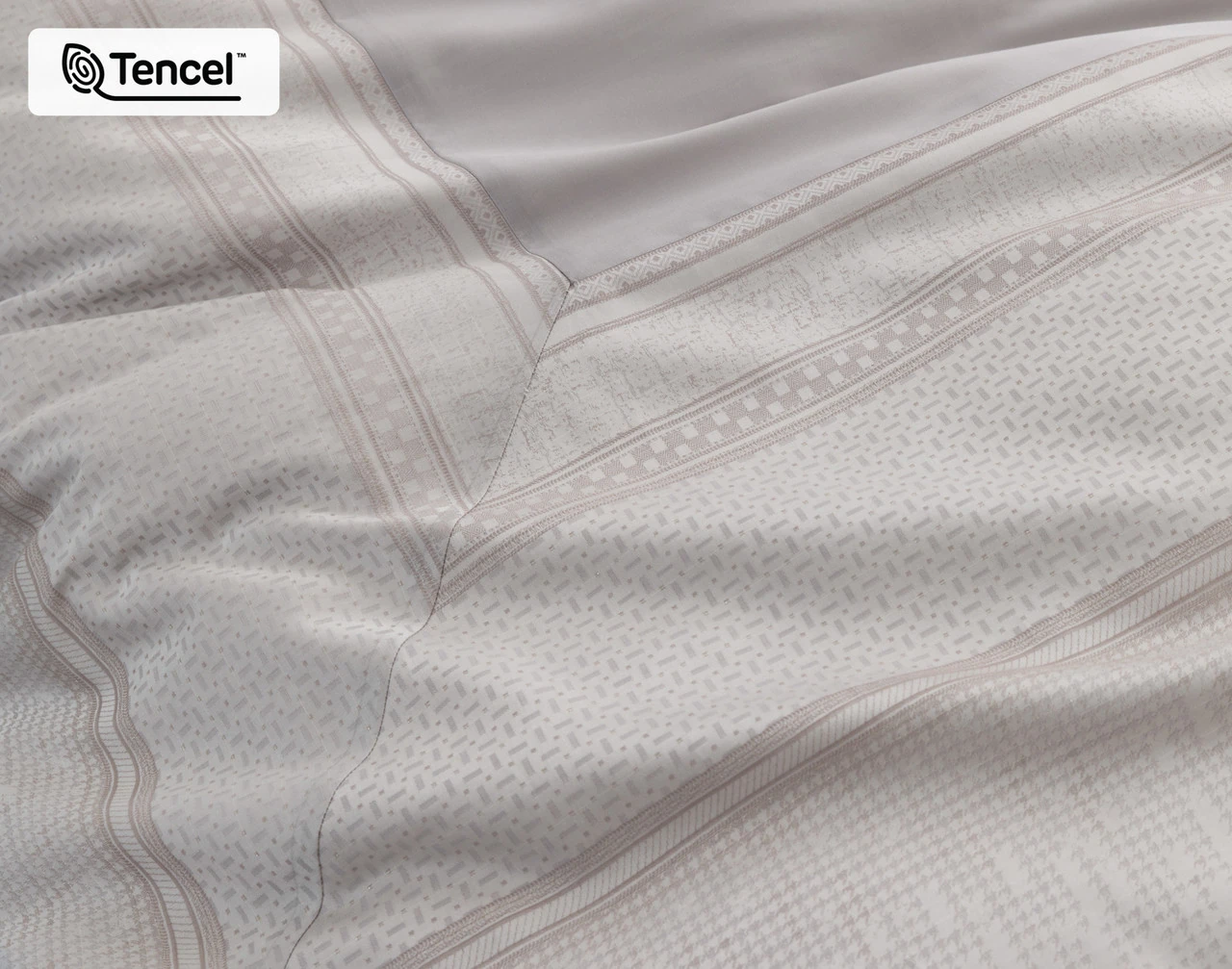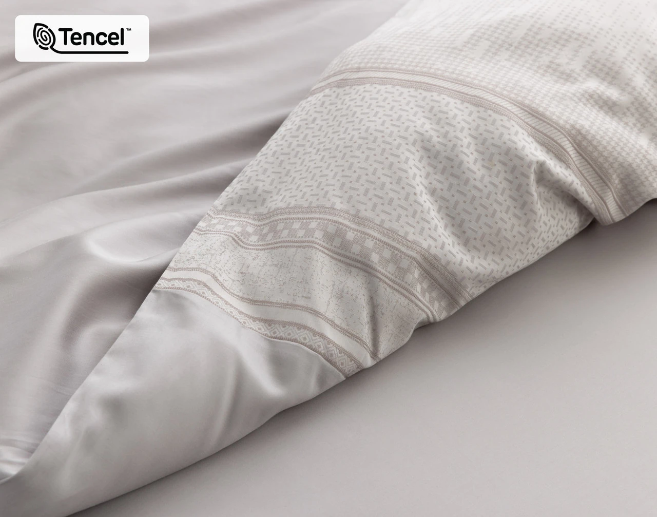 Elevate your bedroom with our luxurious Renley Duvet Cover. Crafted with a yarn-dyed woven jacquard surface, Renley features a refined and intricate geometric border in sophisticated shades of silver and taupe surrounding a solid silver centre. Our duvet cover is made with our lustrous TENCEL™ Lyocell blended fabric woven through with a subtle hint of lurex for a soft and elegant shimmer. For added comfort while you sleep, the coordinating side on our duvet cover features the same TENCEL™ Lyocell fabric in a smooth and solid soft grey colour. With its gorgeous silk-like drape and generous flange, Renley brings understated glamour and a hotel-worthy finish to any space.