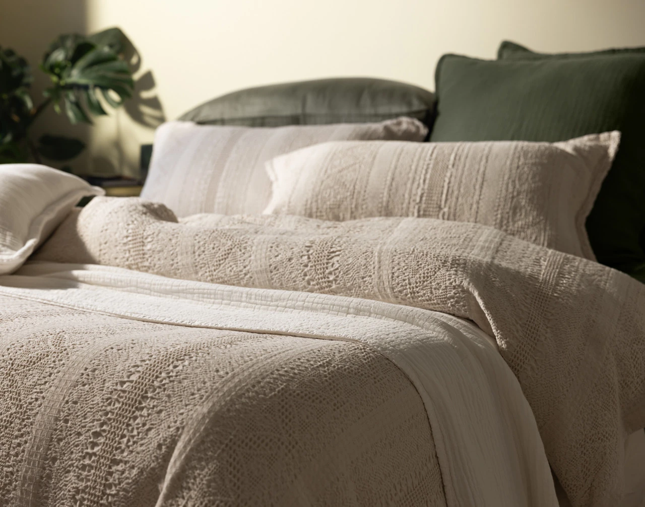 - Jacquard weave in an oat beige palette