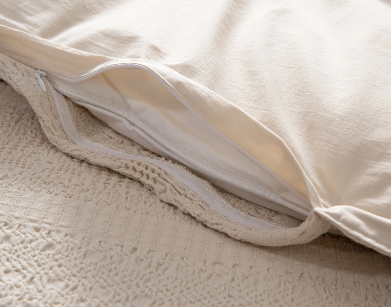 Machine wash cold on a gentle cycle with zippers closed. Use a gentle detergent. Tumble dry on a gentle setting with low or no heat and remove promptly at cycle end. Add QE Home Wool Dryer Balls to reduce wrinkles and increase drying efficiency. Touch up with a medium heat iron or steamer as needed. Do not use bleach or fabric softener. Do not dry clean.