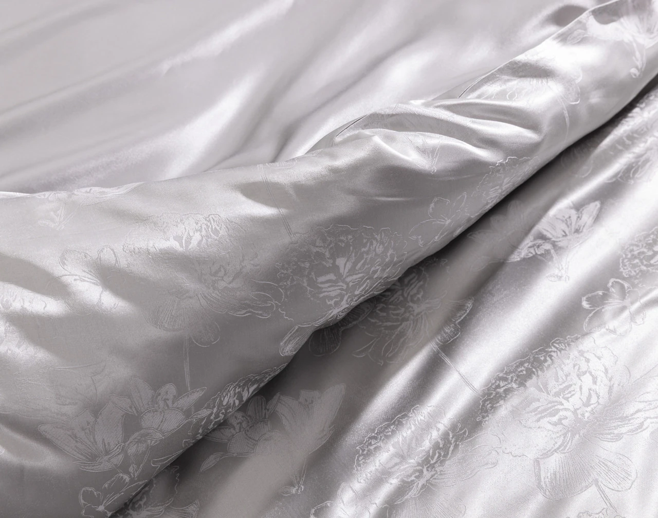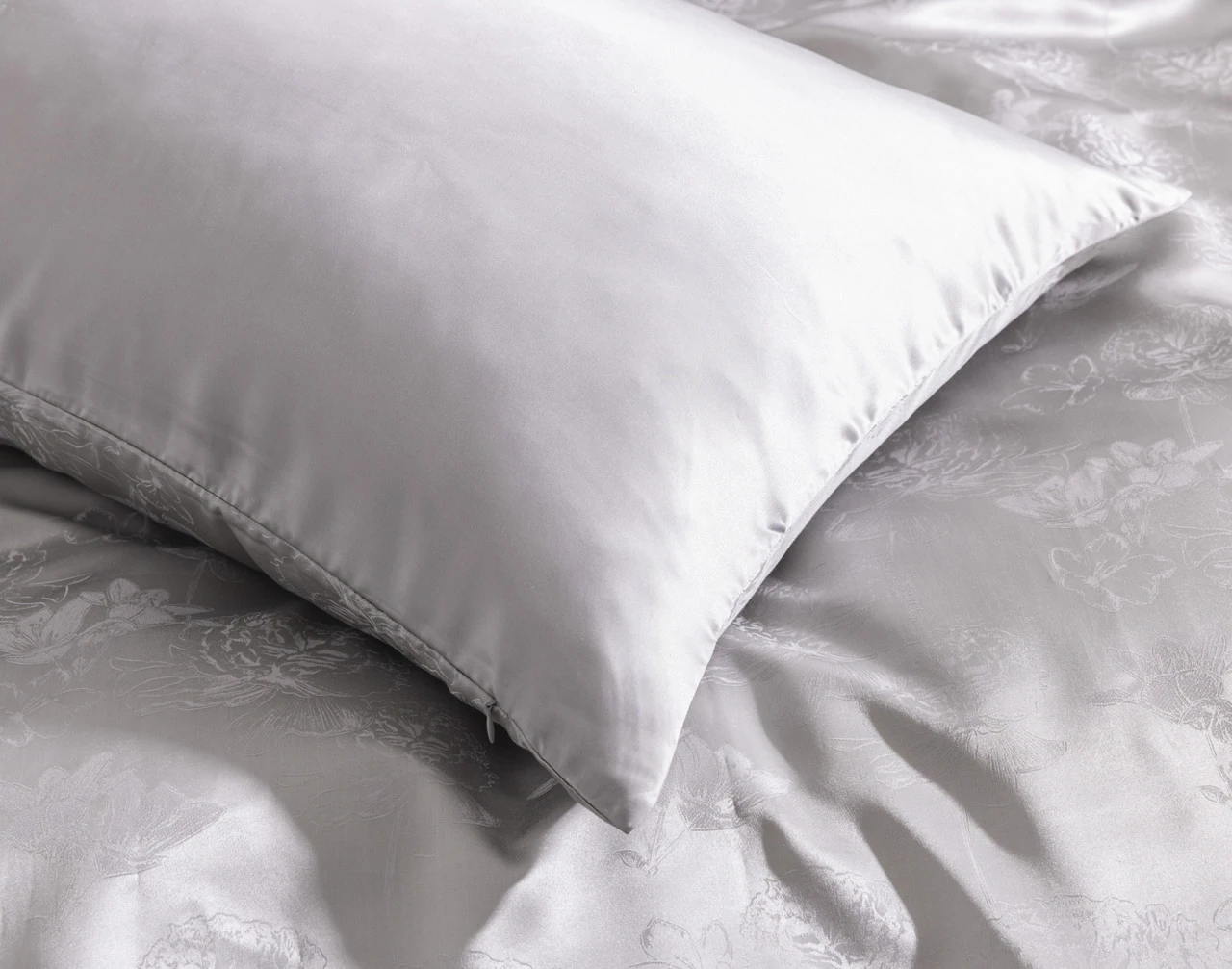 Treat yourself to a heavenly sleep with our Reflections Silk Blend Duvet Cover Set. Crafted with a blend of silk and lyocell fibers, this elegant silver bedding set possesses exceptional temperature regulating properties, keeping warm sleepers cool and cool sleepers warm year-round. These fibers are also hypoallergenic and gentle on your hair and skin, making for a truly restful and soothing sleep. Complete with two matching pillowcases and a stylish etched floral design, this silk duvet cover set is a dream for sleepers who love that luxury feel.