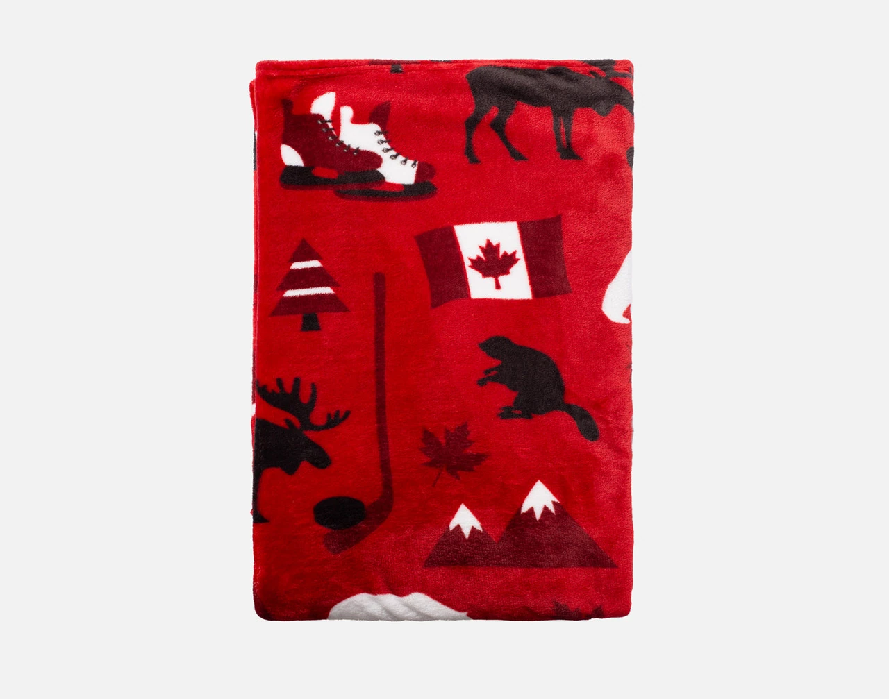 Celebrate the spirit of the country we call home with our True North Fleece Throw. Featuring a patriotic design of hockey skates, animals, trees, mountains, and maple leaves, this lightweight essential is easy to carry (and simple to wash!) for convenient comfort anytime you need. Made with oh-so-soft and 100% recycled polyester, this eco-friendly Canadian accessory is a must-have for every occasion, from spring and summer picnics to quiet nights in.